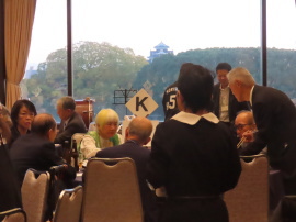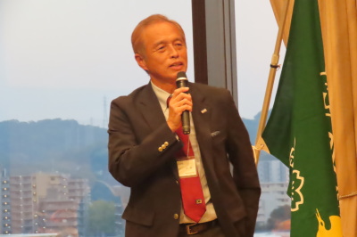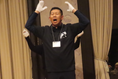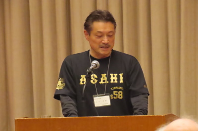 | 懇親会では、ファジアーノ岡山オーナーの木村正明さん(S62卒)により、「『子供たちに夢を!』ファジアーノ岡山とともに」をテーマにトークショーが行われました。ファジアーノ岡山のJ1残留が決まった後とあって、木村さんの熱のこもった話を聞くことができました。 |