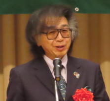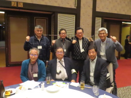 | 懇親会の司会はS58卒山下さん | S48卒亀池さんの音頭で乾杯! |